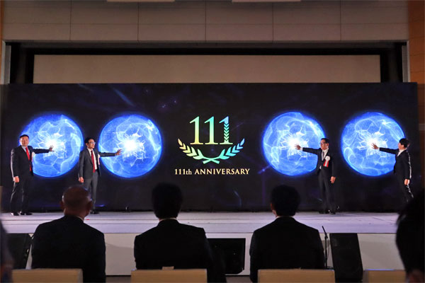 さらに、CEOの呉柏勲、当社 代表取締役副社長 沖津 雅浩、専務執行役員 兼 CFO 陳信旭、常務 研究開発本部長 種谷 元隆の4名による「創業111周年キックオフセレモニー」を実施。最先端の技術・ソリューションへの期待を抱かせる演出を行いました。