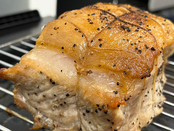 焼き色を見るだけで、思わず笑顔になってしまいます。おいしそうーー!切った断面からは肉汁があふれてきます。一見ピンクでまだ火が通っていないように見えますが、低温でしっかり加熱しているので問題ありません。