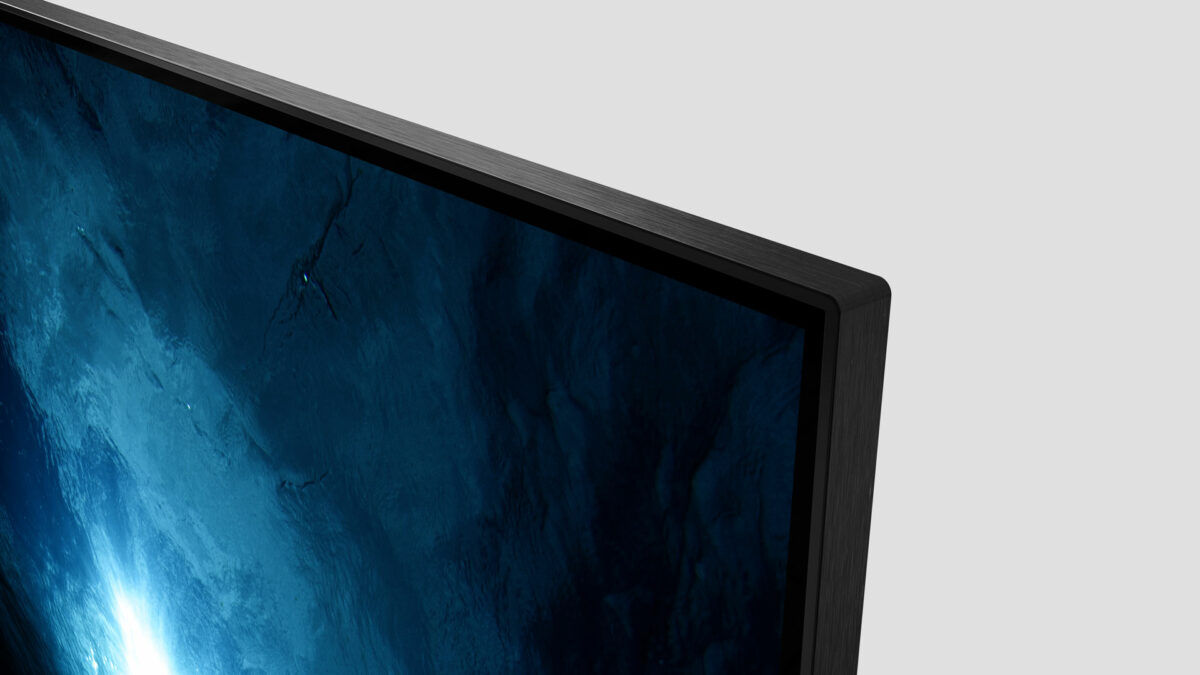 ディスプレイの外周を黒いアルミフレームで包んだフルフラットデザインのディスプレイ(FN1ライン)