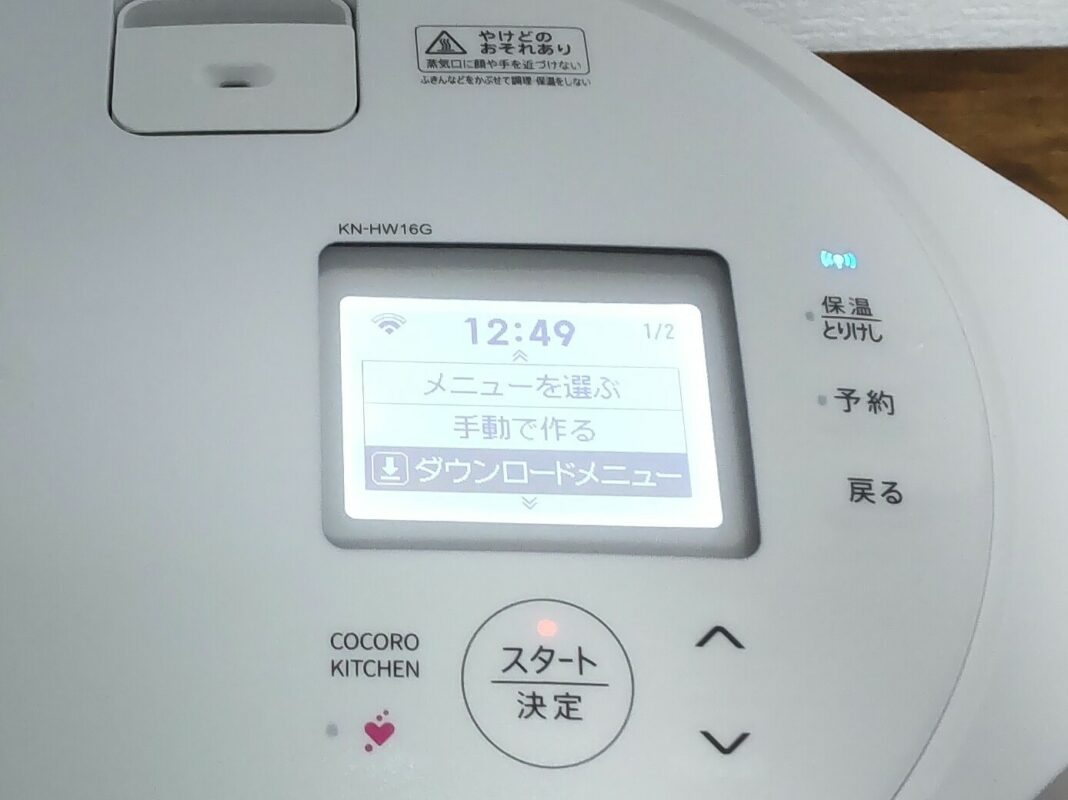 ダウンロードメニューは、30メニューまで本体に保存でき、2回目以降はスマホなしでも調理可能