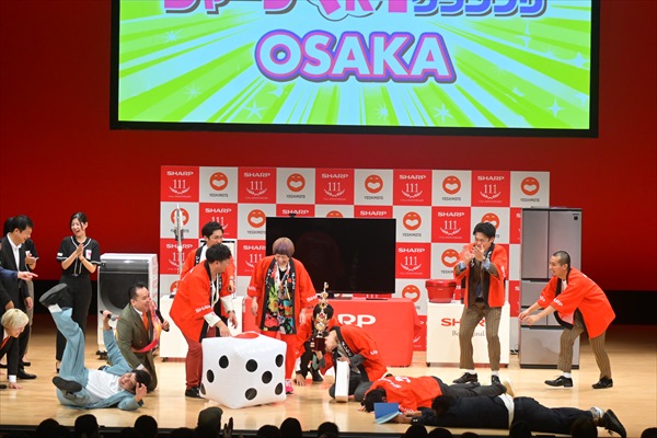 PR-1芸人4組の担当は、戦士さんがヘルシオ、タナからイケダさんは洗濯機、女と男さんが冷蔵庫、藩飛礼さんがAQUOSテレビ。それぞれおもしろおかしく当社の製品をPRしてくださいました。