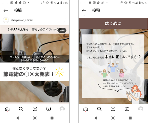 シャープの太陽光発電をより多くの方に知っていただくため、どちらのアカウントも楽しんでいただけるコンテンツを掲載していきたいと思っています。ぜひフォローをお願いします!