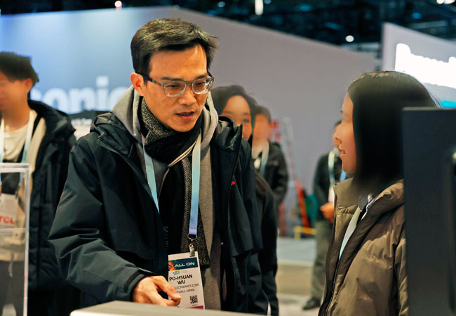 シャープブースを視察する 当社 代表取締役社長 兼CEO 呉柏勲