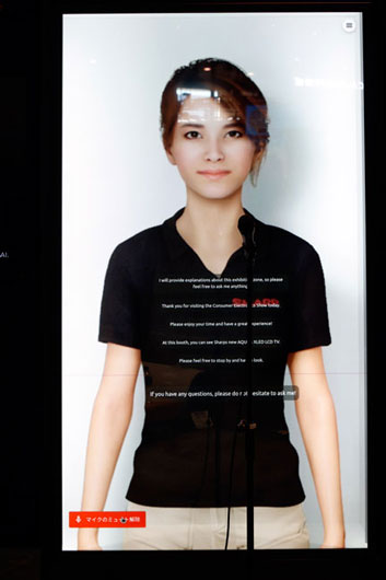 シャープブースには、多くの方にご来場いただいています。バーチャル説明員が、スムーズな会話で展示内容を紹介する「AIアバター」や、においを判定する「AI Olfactory Sensor」など、さまざまな海外初披露の技術に多くの方が関心を持たれているようです。