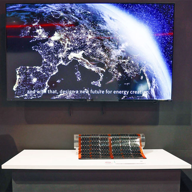 発電効率が高く、薄型・軽量かつフレキシブルな次世代の宇宙用太陽電池です。巻き取りが可能なモジュールでコンパクトに収納して移動し、現地で大面積に展開して発電できるなど、移動体用太陽電池としてこれまでにない使用方法が可能となります。