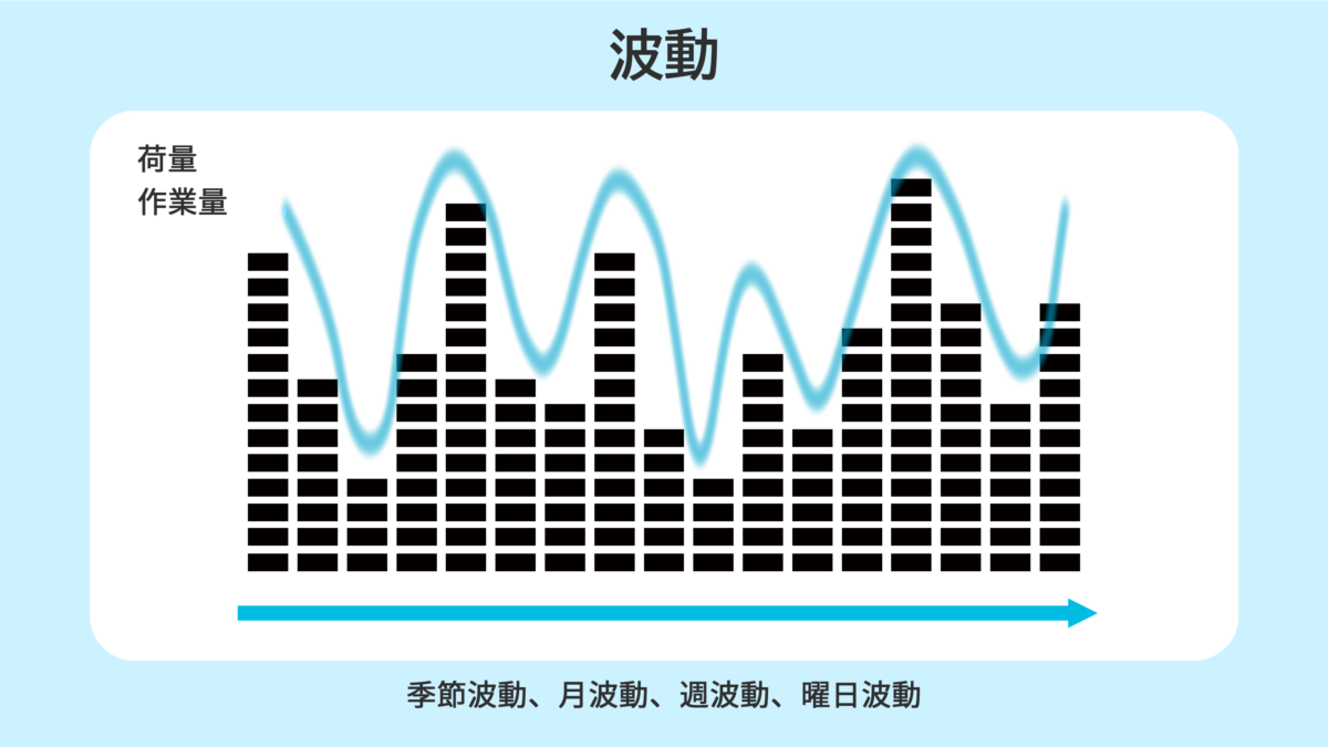 物流業界における「波動」とは、時期や時勢によって変化する需要や供給があらわす、荷量が変動する波のことです。