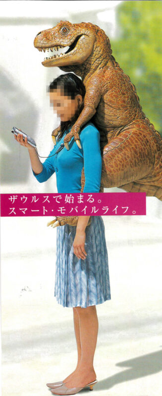 初号機<PI-3000>のキャッチコピーは「仕事にザウルス、あとはいらん」「忙しいのは誰のせいだ、僕のせいだ」とハッキリと言い切っていました(笑) 7年後に発売した<MI-E1>では、恐竜をタレントさんに背負ってもらうテレビコマーシャルをするなど、話題になりました。