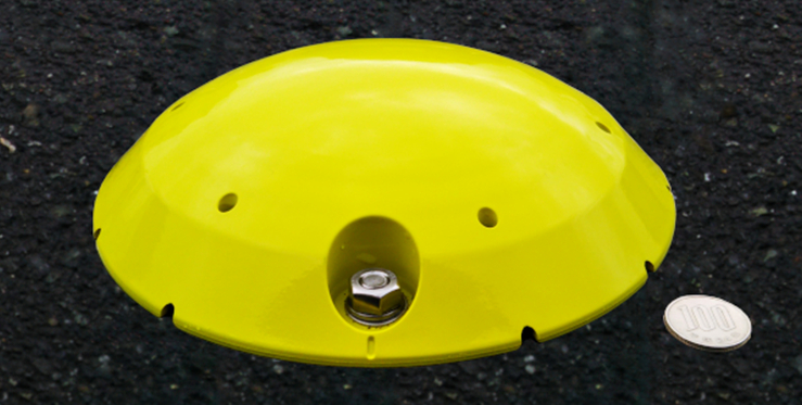 また、在車センサーの外観は平たい山形の形状をしていますが、この形状は、雨粒や塵、落ち葉などの異物の影響を極力受けないように、また、車に踏まれても壊れないことを目的にさまざまな形状を試してたどり着いた苦心の作です。コインパーキングで一般的に要求される仕様の2tの車に踏まれても壊れません。実力的には余裕のある頑丈な設計で対荷重性には自信があります。