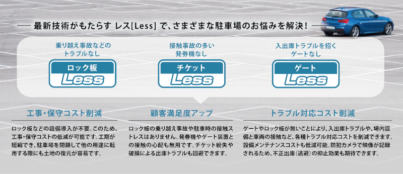 ロック板方式のコインパーキングシステムに比べ、どんなところが優れているのでしょうか?
