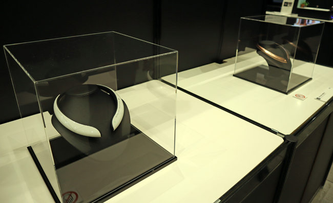 昨年も展示した独自エッジAI技術「CE-LLM」がさらに進化。その「CE-LLM」を搭載し、首にかけるだけで、手軽に音声による生成AIとの自然なコミュニケーションを実現するウェアラブルデバイスを展示しています。利用者の問いかけに対し、内蔵したマイクとカメラで周囲環境を把握した上で、音声で応答します。
