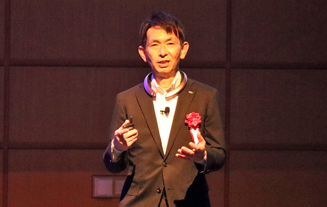 一般オープンに先立ち、当社 代表取締役 社長執行役員 兼 CEO沖津 雅浩、続いて、当社 専務執行役員 CTO 兼 ネクストイノベーショングループ長 種谷 元隆より、開会の挨拶とSHARPのAIについての取り組み方針を説明しました。