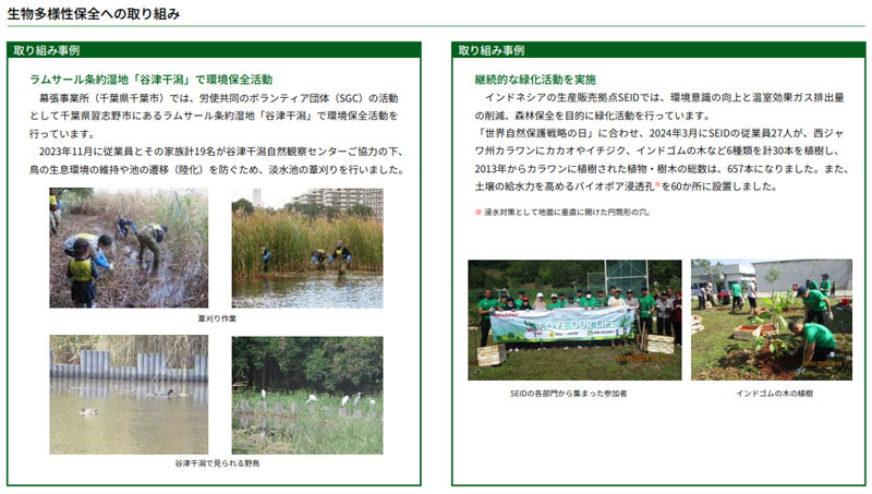 (左:幕張事業所実施の環境保全活動、右:インドネシア生産販売拠点による緑化活動事例)
