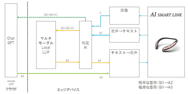(海老原)エッジAI技術「CE-LLM」により、利用者の問いかけに対し、高速な応答が期待できる端末内のエッジAIか、Chat GPTなどの豊富な情報が得られるクラウドAIのいずれで処理するかを即時に判断し処理することで、スムーズで自然な会話のやりとりを実現します。