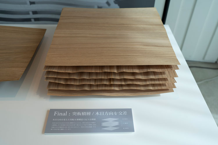 さまざまな試行錯誤の結果、縦格子には高級家具などに使われるホワイトオークの無垢材を選定しました。しかし、角度が付けられた格子はプレス機を使えないため、木工職人の手で一本一本、木材の凹凸と糊で接着していく必要があり、大量生産ができません。そのため、希望小売価格55万円、月産生産台数が最大100台となりました。