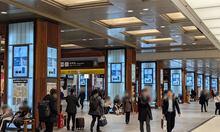 その後、JR金沢駅にも足を運びました。浜辺美波さんの出身地でもある石川県。金沢の文化を感じる美しい駅構内に、浜辺美波さんの広告が掲示されています。地元の方々や観光客がその広告を見て、思わず立ち止まって写真を撮っていました。