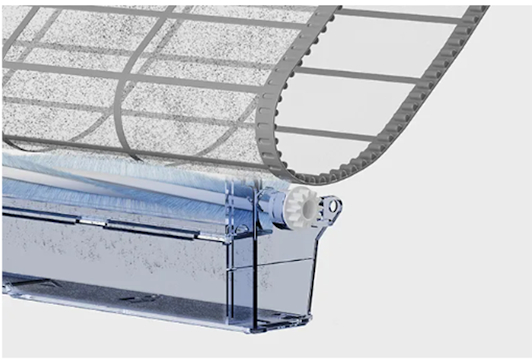 現在販売中のプラズマクラスターエアコン Vシリーズには、「フィルター自動お掃除」機能を搭載しています。この機能により自動でフィルターについたホコリをトルネード形状の掃除ブラシがかき取り、大容量のダストボックスに溜めていますので、