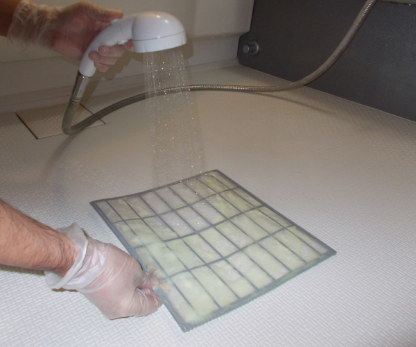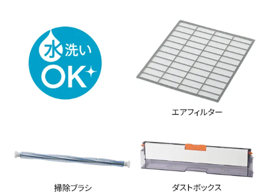 キッチンの近くに設置しているせいか、エアフィルターに油のようなベタツキ感がありましたので、お風呂場で中性洗剤を使い、軽くこすってベタツキを浮かせてからシャワーで洗い流しました※。また、掃除ブラシとダストボックスもシャワーで汚れを洗い流しました。