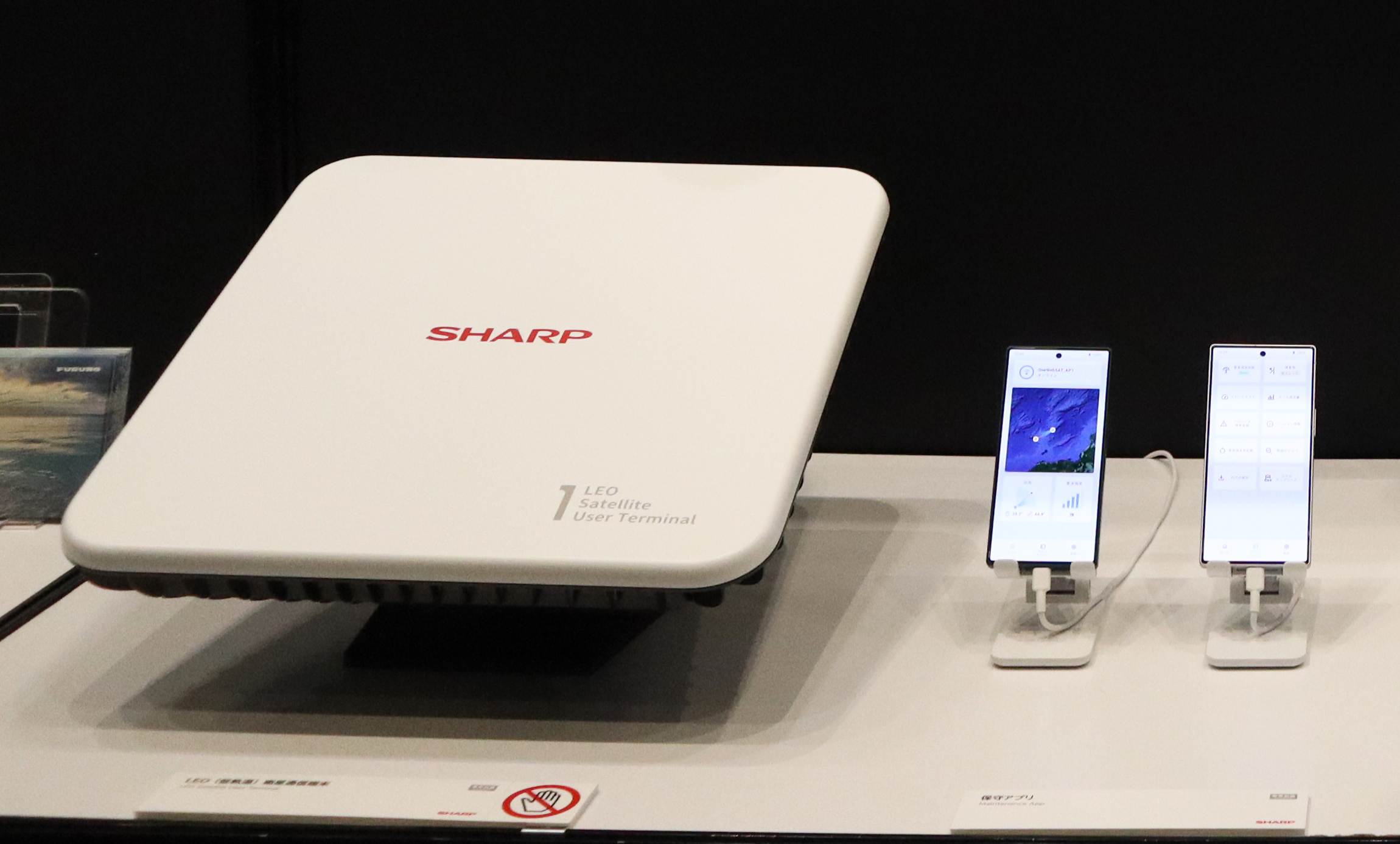 シャープは、モバイルデータ通信が困難な海上での高速大容量通信を可能とする、船舶向け衛星通信アンテナの早期実用化を目指すため、船舶用電子機器分野大手の古野電気様とLEO/MEO衛星通信アンテナの開発において協業しています。さらに、2024年12月10日にはその分野を建築分野まで拡大し、建設DX向けの衛星通信ソリューションを両社で開発することを発表しました。この建設DX向けの衛星通信ソリューションを、12月11日(水)から13日(金)まで東京ビッグサイト(東京都江東区)にて開催された「JAPAN BUILD TOKYO ―建築の先端技術展―」の古野電気様ブースにて、参考展示しました。