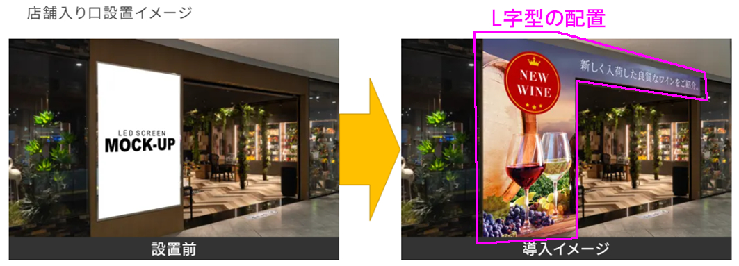 LEDディスプレイはモジュールと呼ばれる部品を、通常、複数枚組み合わせて大画面表示を実現します。また、L字型に組み合わせるなどして自由度の高い表示も実現できます。