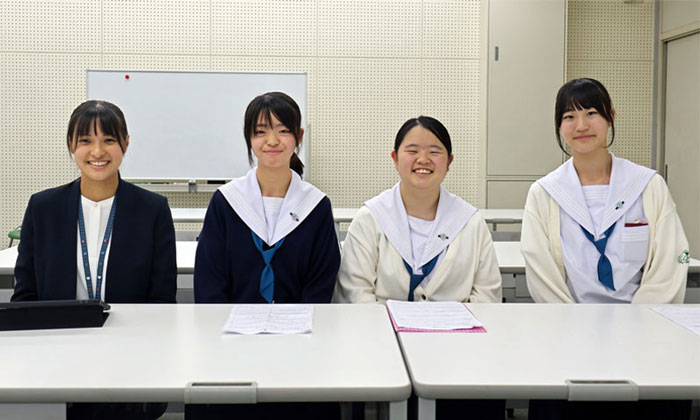 後日、大谷中学校・高等学校を訪問して、講演会に参加した生徒を代表し、中学2年生の西川さん、樋口さん、中学1年生の吉田さんの3名と、引率で来られていた教諭の東 先生にお話を伺いました。