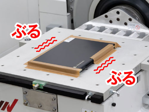 歩行や自転車移動中の振動を想定し、前後左右上下振動させて壊れないことを確認します。