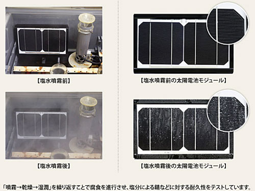太陽電池モジュール周辺機器に関してもさまざまな試験により、長期耐久性を追求しています。