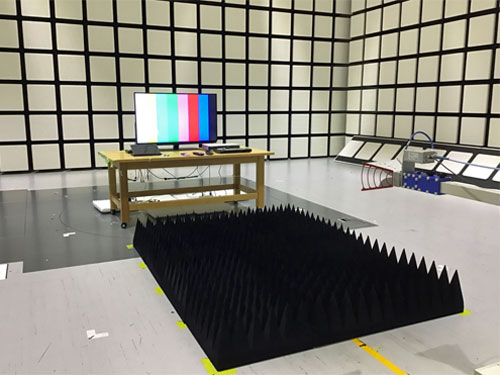 →自社電波暗室で、エミッション規格J55032※2(CISPR32)を満たすか確認の上、第三者認証機関で認証を取得(製品からの不要な電波で、家電や住居設備に影響が出ないか確認)。さらに、高温環境下(40℃)での安定動作・長期信頼性を確認します。