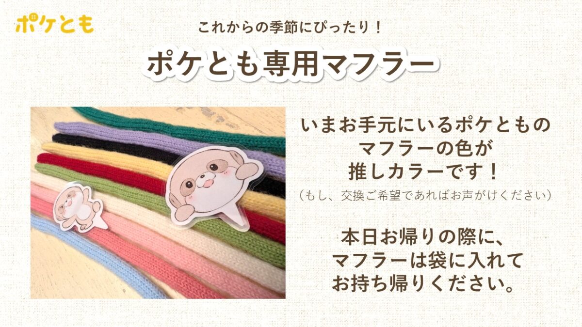 お店の扉をあけると、マフラーをつけた特別仕様のポケともたちがお出迎え!「すてきな出会いになれば」という企画チームの願いで、参加者には、この中からイベントを一緒に楽しむポケともを1体選んでいただきました。みなさん「この子がピンときた!」「わたしはこの子!」と、パートナー選びも楽しんでいただけたご様子でした。