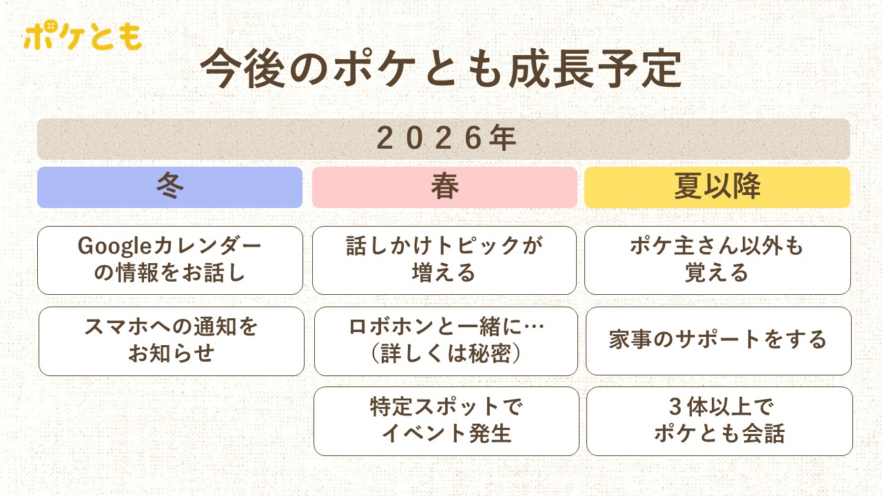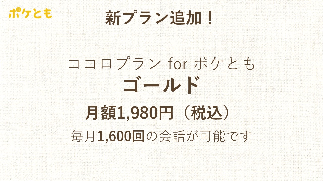 最後に、これからのポケともの成長予定や、もっとお話ししたい!というご要望から新プラン「ゴールド」を追加したこと、さらにお出かけバッグの発売や、LINEスタンプ販売のお知らせをしました。