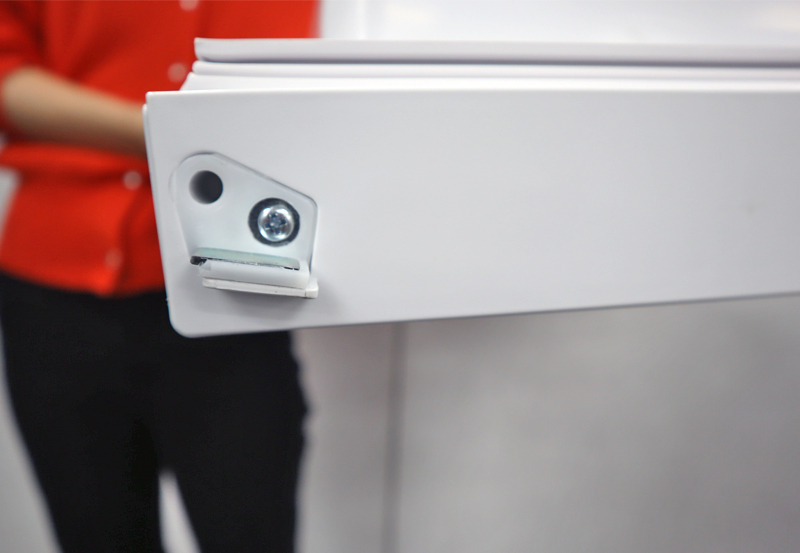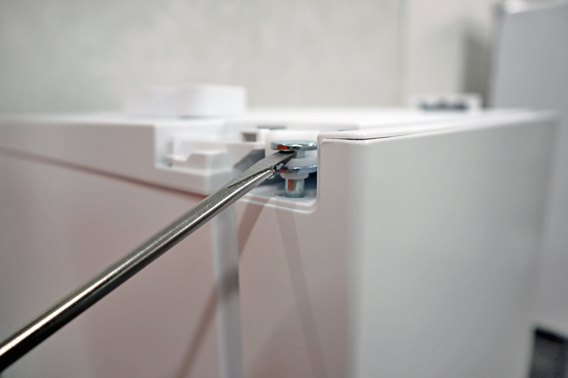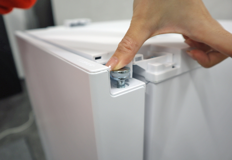 実際にやってみると、思った以上に簡単。説明書を一通り読んだ後に付け替えてみましたが、1分半ほどで付け替えることができました。女性一人でもできる作業で、引っ越しや模様替えにも柔軟に対応できます。購入者の半数以上の方が、実際に付け替えて使用しているそうです。簡単に付け替えられる仕組みですが、ドアがしっかり固定される設計なので、通常の使用で外れる心配はほとんどありません。