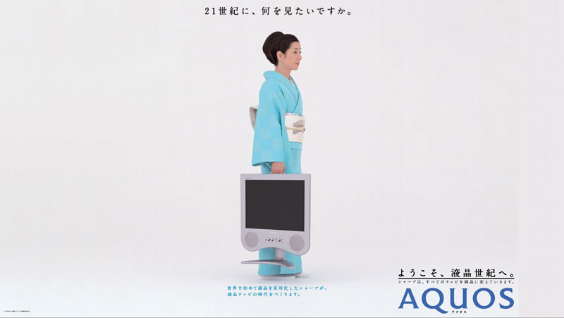 そして、翌2001年元日、着物姿の吉永 小百合さんが、『AQUOS』を片手に持ち、「ようこそ、液晶世紀へ。」とするキャッチコピーの広告で紹介したのが第1号『AQUOS』<C1シリーズ>です。