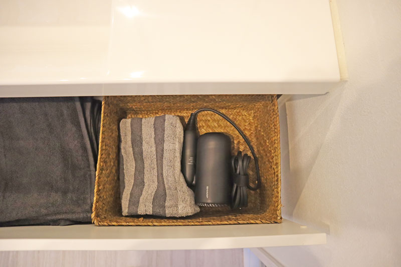 邪魔にならない大きさなので、洗面台横のわずかなスペースに置いてお風呂上がりにさっと使えます。また、持ち歩きもラクなので、リビングに持って行って、テレビを見ながら髪の毛を乾かすといった使い方ができそうです。