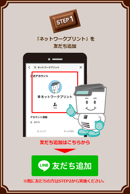 1.LINEで「ネットワークプリント」を友だち追加