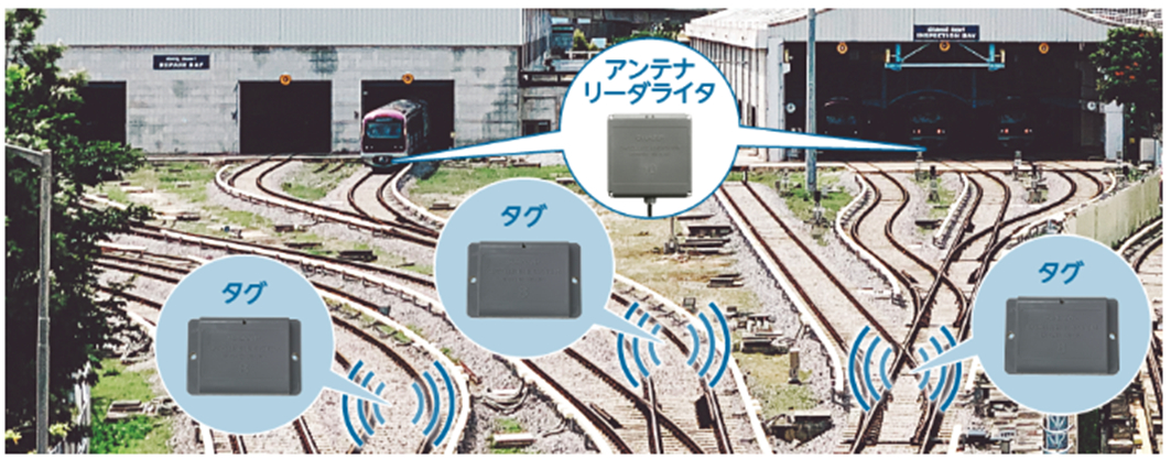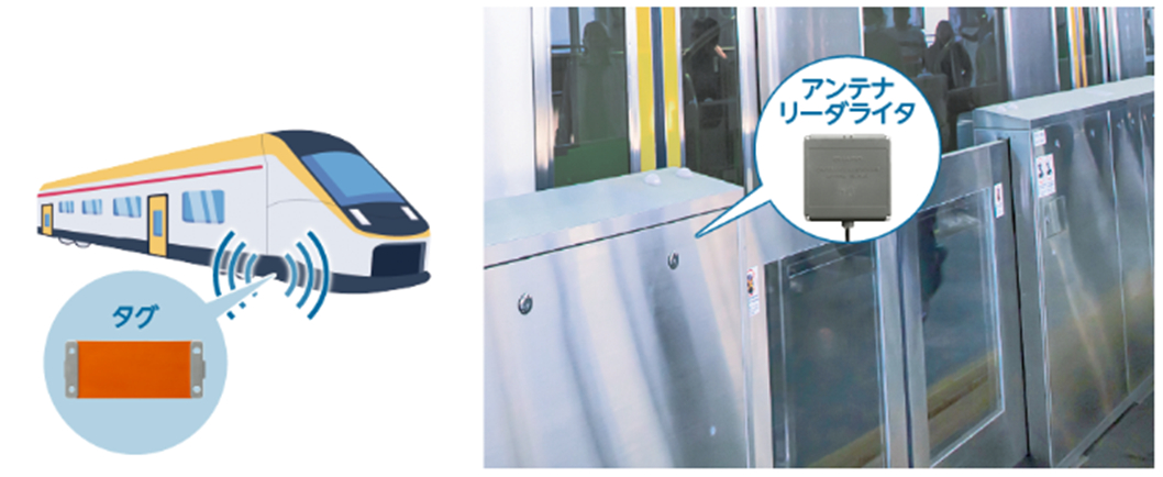 鉄道の場合、鉄道車両の先頭に、車両情報が登録されたRFIDタグが取り付けられています。 駅のホーム側にはアンテナが設置されており、電車がホームに近づくと、そのアンテナがタグの情報を読み取ります。