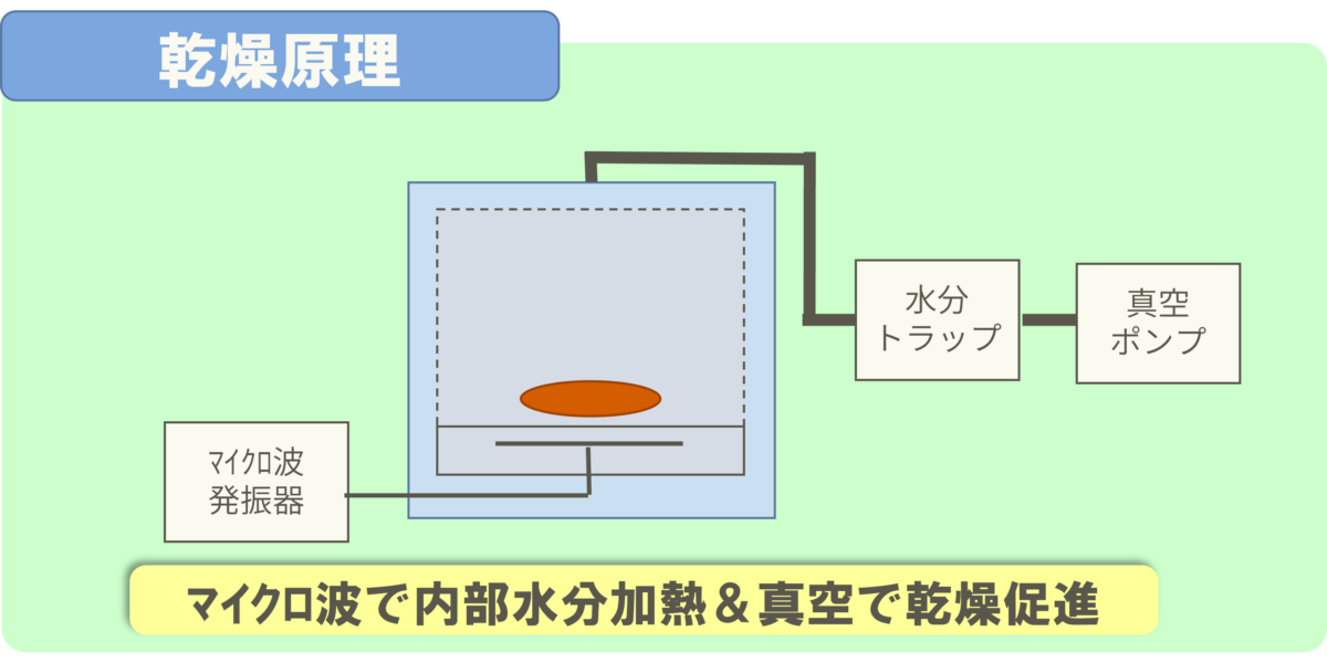 真空に近い状態にすると、低温でも水分が蒸発しやすくなります。