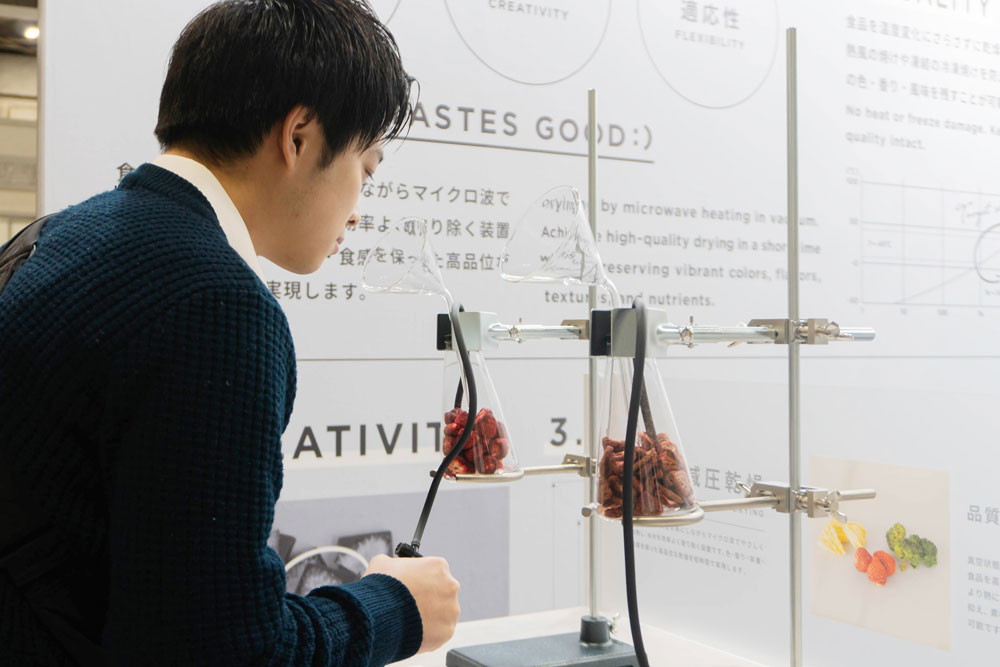 来場者の方々からは、「見た目がきれいに保持できるのに驚いた」「フレッシュな香りが生きている」「導入サイズ感がちょうどいい」「フリーズドライの機器よりも手軽に導入できそうなのが良い」といった声を多数いただきました。