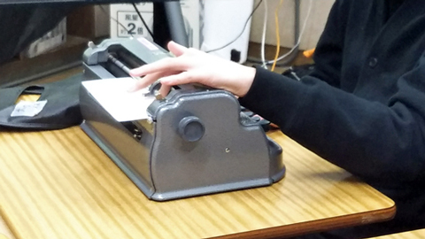 B課程-視覚障がいに加え、知的障がいのある生徒:自作教材を活用するなどして学習。