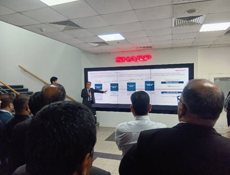 まずインドでは、地域の販売会社であるシャープ・ビジネス・システムズ・(インディア)・プライベート・リミテッド(SBI)を訪問し、当社の状況や日本市場におけるAIoT家電、新しいコーポレートスローガンなどについて説明しました。