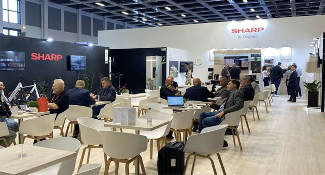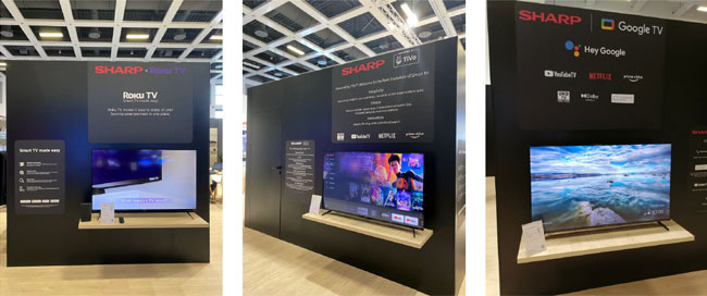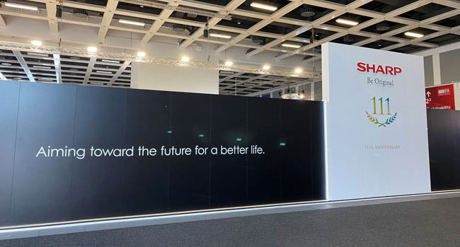 ウィルス感染症拡大の影響もあり、シャープは、2021年、2022年は出展せず、ヨーロッパ各地を訪問し、主要顧客やジャーナリストに対して、最新の製品や技術を紹介しました。今回は、3年ぶりの参加となりましたが、一般公開は行わず、商談用のブースを設け、招待制での出展となりました。