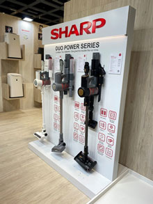 SAS事業部門(家電)からは、デザインにこだわった「引き出し式電子レンジ」や「ピュアフィット空気清浄機」、高品質の「エアフライヤー」シリーズ、コードレススティック掃除機「Power Duo」シリーズなどを紹介しました。