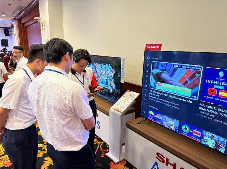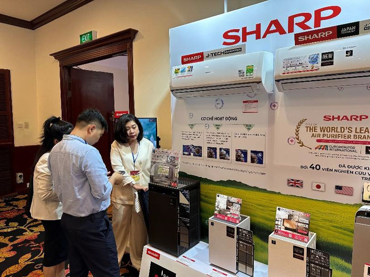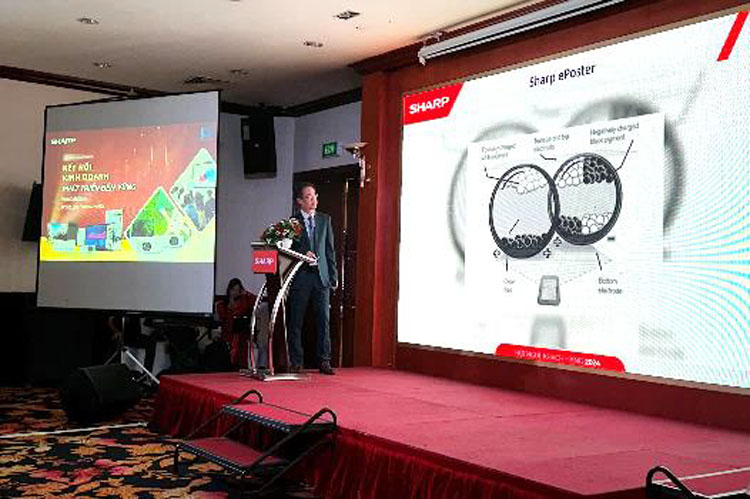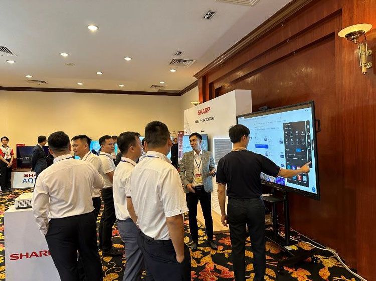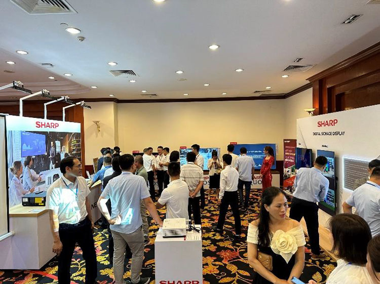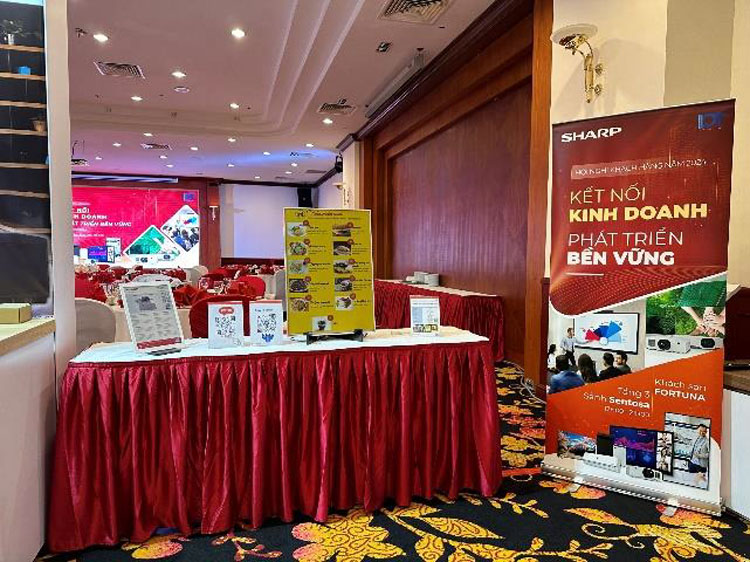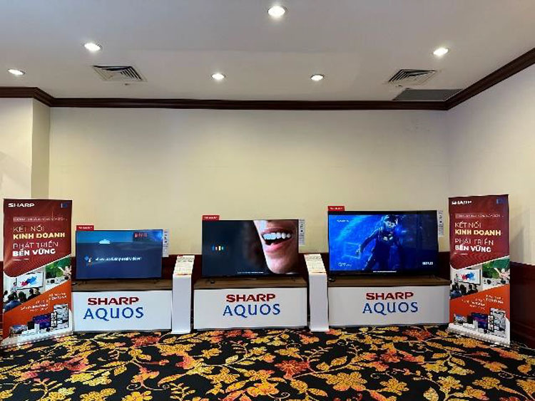 テーマは「Connecting Business for Sustainable Development(持続可能な発展のためのビジネスの連携)」で、シャープの製品ラインアップを展示し、今後のビジネスの方向性、ベトナムの代理店の方々と今後も引き続き協力する姿勢をお伝えしました。