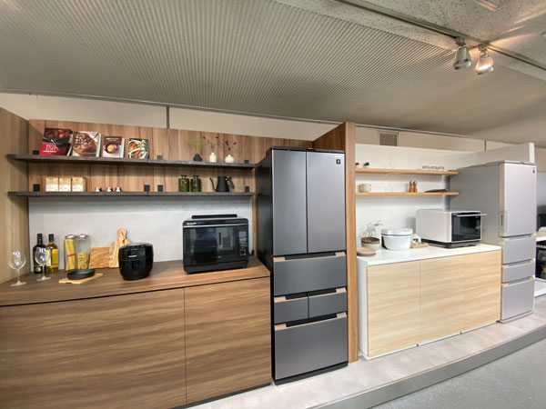 キッチンやサニタリーをイメージしたシーン展示のコーナーや、プラズマクラスターのBtoCからBtoB向けまで幅広い商品ラインアップを紹介するコーナー、美容コーナー、掃除機コーナーなど、商品カテゴリー毎のブランドステートメントやイメージムービー、写真なども交えた今までにない展示になっています。デザインスタジオの皆さんには、展示案の作成から施工・設置、また、イメージムービーの作成まで、できるところは全て手作りでやって頂きました。ご協力頂いた皆さん、改めましてありがとうございました!