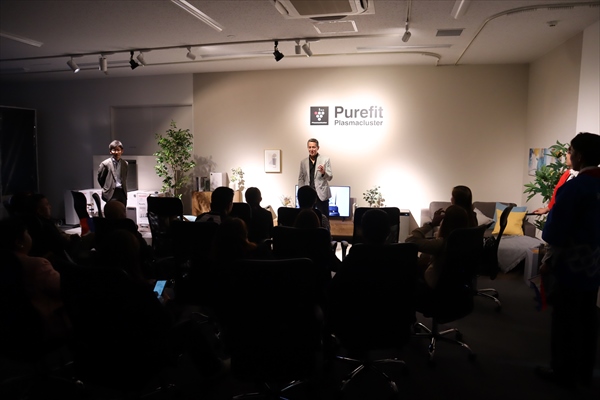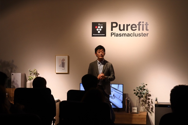 その後、メディアの方々に向けて、PCI・ヘルスケア事業部 副事業部長の岡嶋さんから、プラズマクラスター技術についての説明と、新製品のお披露目を行いました。