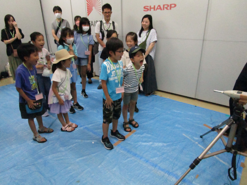 午前中の『SHARP製品ふれあいコーナー』では、「サウンドパートナーの文字起こしゲーム」「POSのレジ打ち体験」「まるで目の前にいるかのように感じるサラウンドシステム体験」「人感センサーを使用したゲーム」「夢のような大画面ディスプレイでのゲーム」などを実施、子どもたちはもちろん、大人の方々にも楽しんでいただけました。