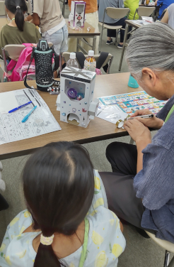 そして、『工作キット製作』では、さまざまなシールでデコレーションを施した個性溢れる「ガチャ貯金箱」を完成させました。