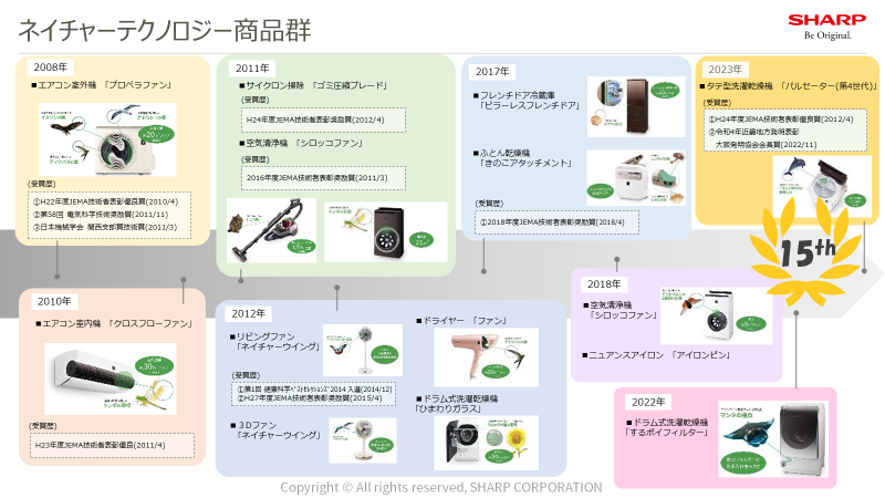 「ネイチャーテクノロジー」への取り組みは15年以上におよび、これまで、エアコン室外機や扇風機、ドライヤー、洗濯機など23品目の実製品に搭載してきました。本講演ではこれまでの歩みと、生物の動作を応用する「ネイチャープロダクト」創出への挑戦について紹介しています。