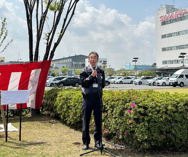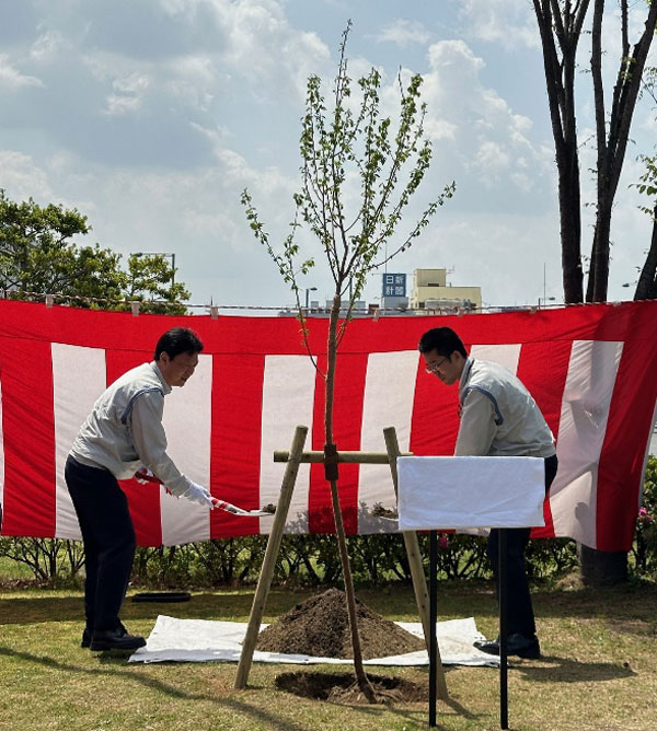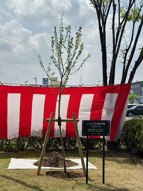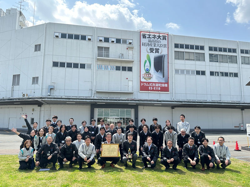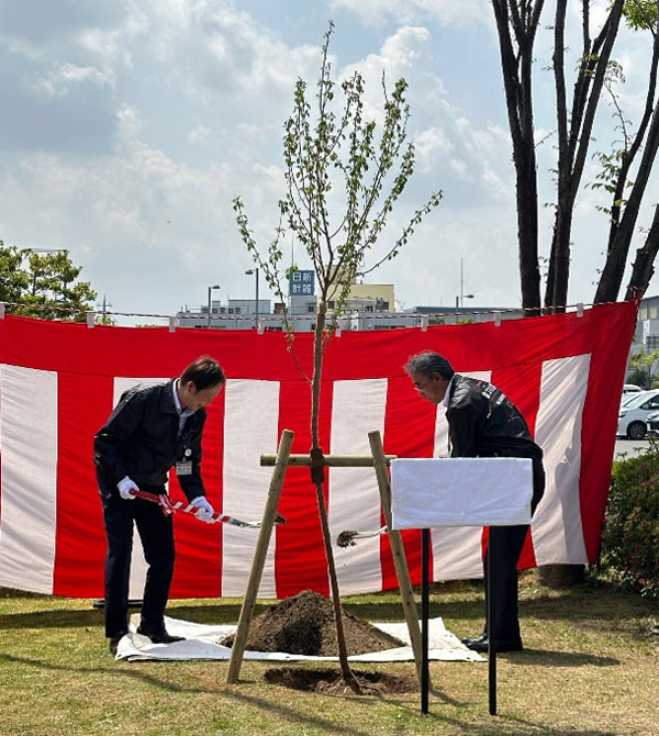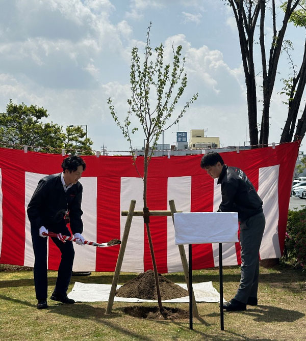 「プラズマクラスタードラム式洗濯乾燥機<ES-X11B>」が、「2023年度省エネ大賞」製品・ビジネスモデル部門において、最高位の「経済産業大臣賞」を受賞したことを記念し、大安吉日の4月17日に八尾事業所で植樹式典を開催しました。