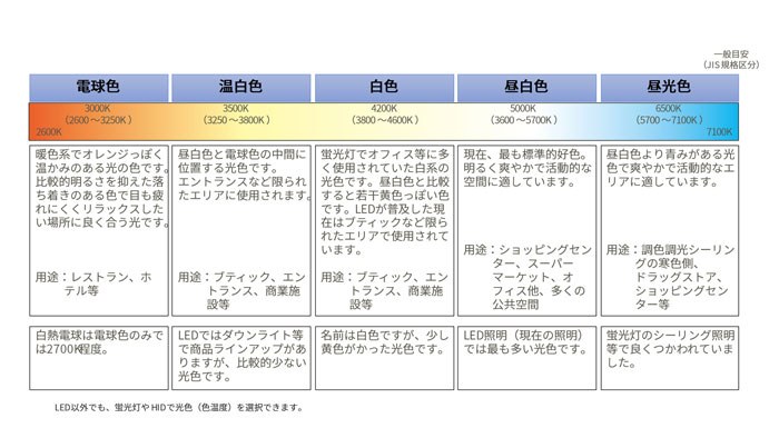 ②LED・蛍光灯・白熱灯の色の違いなどについて、明かりの歴史、光色(電球色・白色・昼光色など)と用途、なかでも青色照明(落ち着く、集中力を高めるなど)の効果