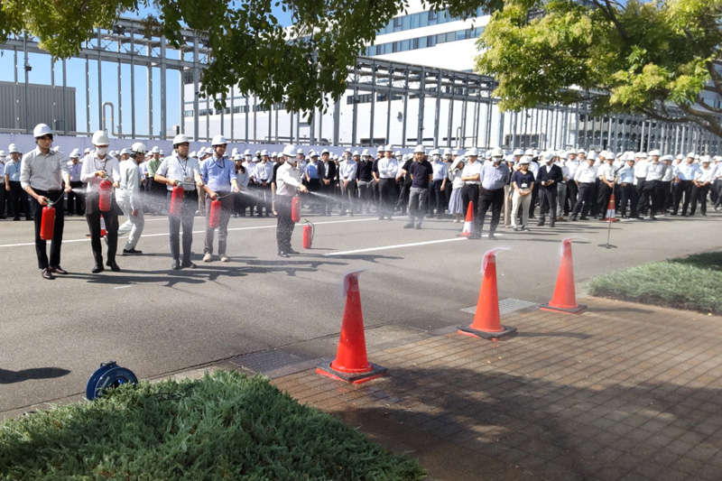 その後、消防隊長を務める人事部長兼総務グループ長の宮川さんより総評があり、避難行動も回を重ねるごとに迅速に出来ており、これからも継続していくことで意識を高めていくことや、日ごろから火災の原因となる箇所をチェックすることで、そもそもの火災リスクを下げる意識づくりの大切さを説明しました。