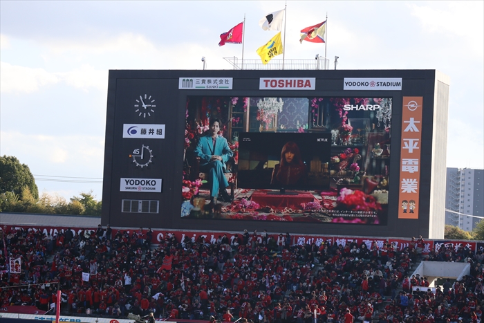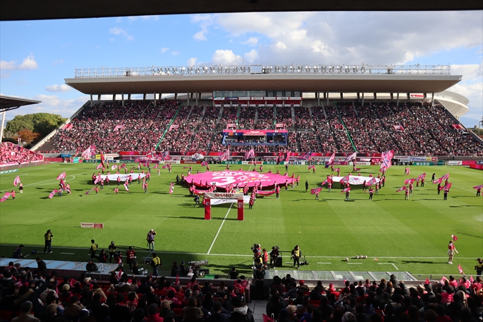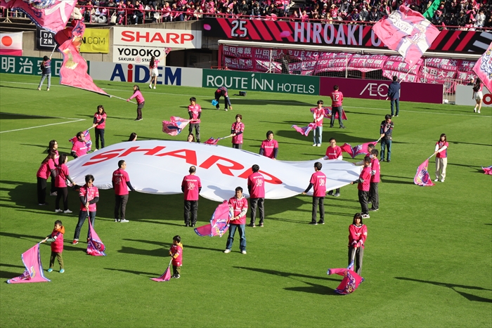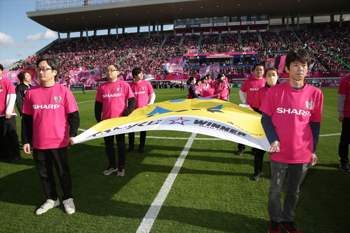 11月30日、当社がオフィシャルスポンサーを務めるセレッソ大阪のホーム、ヨドコウ桜スタジアムで、当社スポンサードの冠試合「SHARPサポーティングマッチ」が開催されました。チケットは完売、会場は満席で熱気の渦に包まれました。
